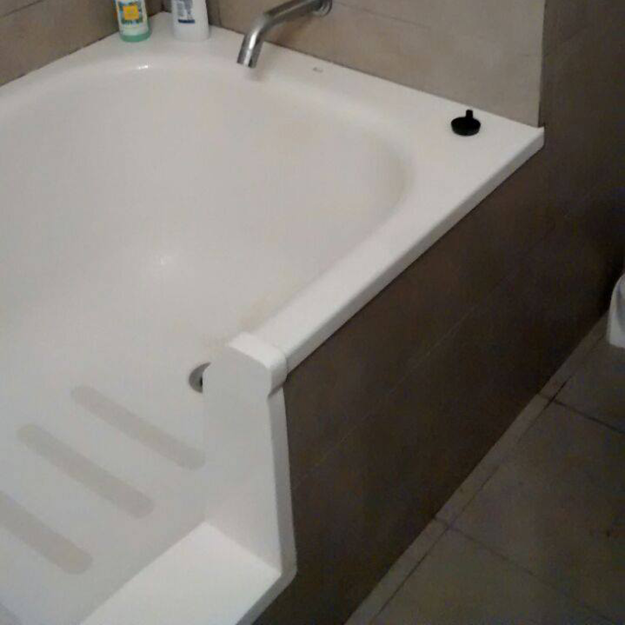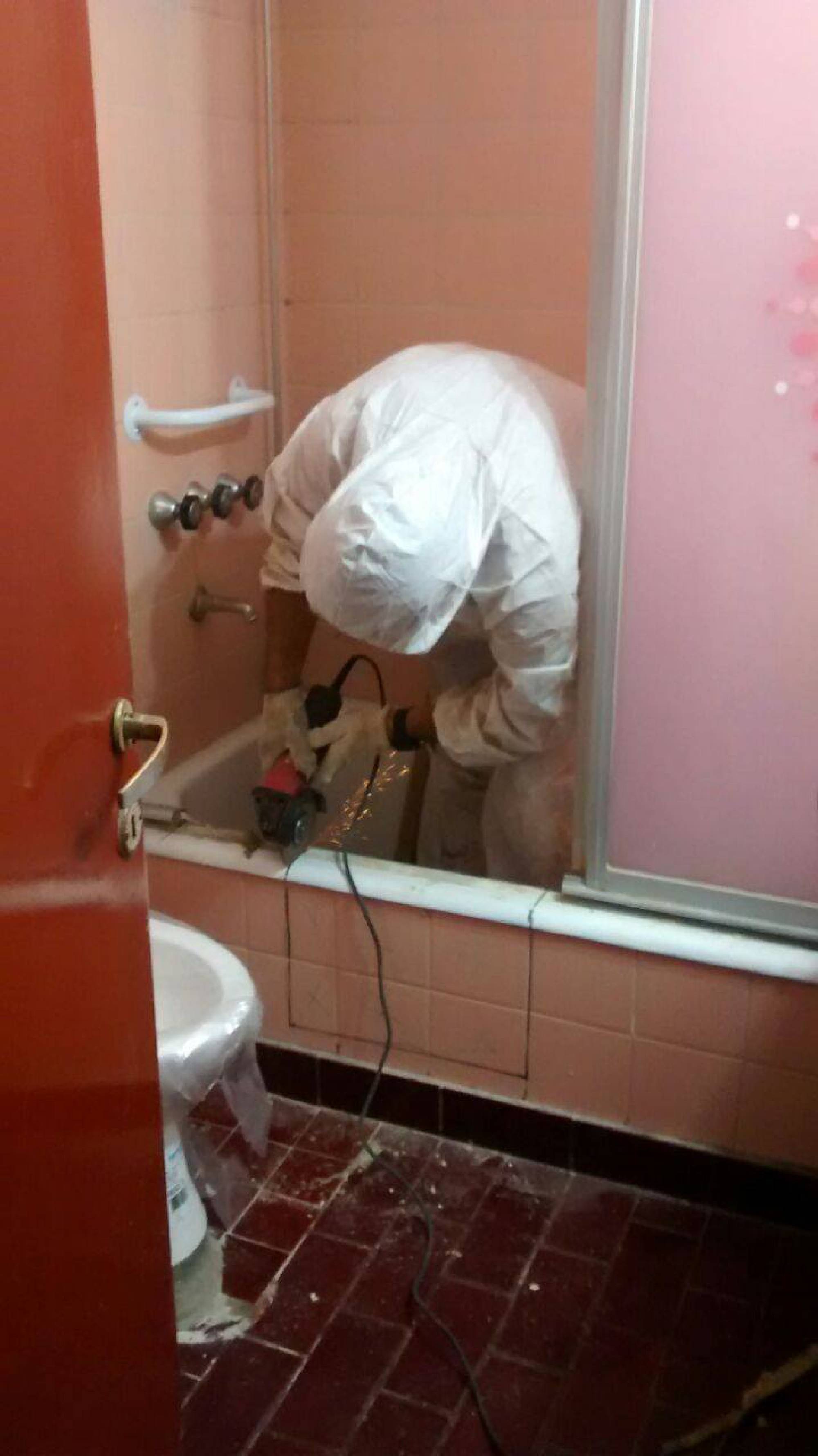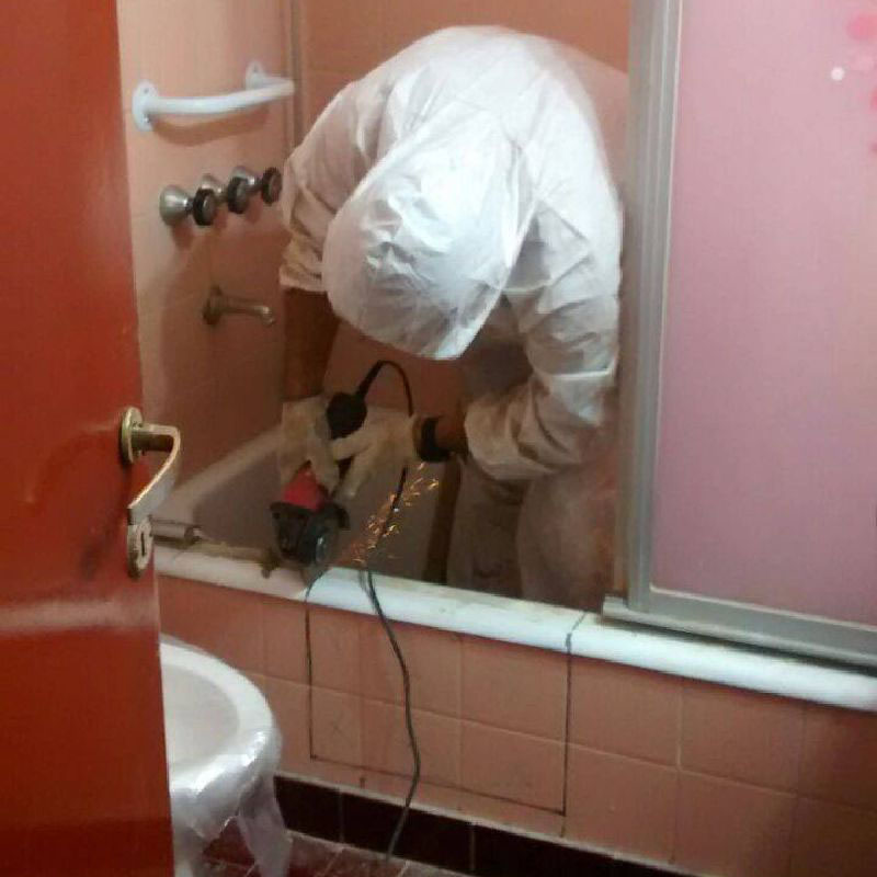 Corte de bañera, en alrededor de 2 horas de trabajo. Dejando el baño totalmente utilizable, incluso la bañera intervenida.